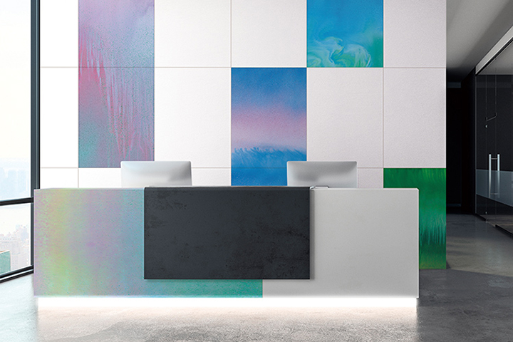 “プラスワンダー” はアイカ工業と、海外でも活躍するテキスタイル・デザインスタジオ、LIGHT CUBEとのコラボレーションにより誕生したブランドです。家具はもちろん不燃化粧板で壁面の演出に、1枚からオーダーが可能です。鮮やかな色彩、高感度なデザインは、インテリア・プロダクトを問わず広くお楽しみいただけます。