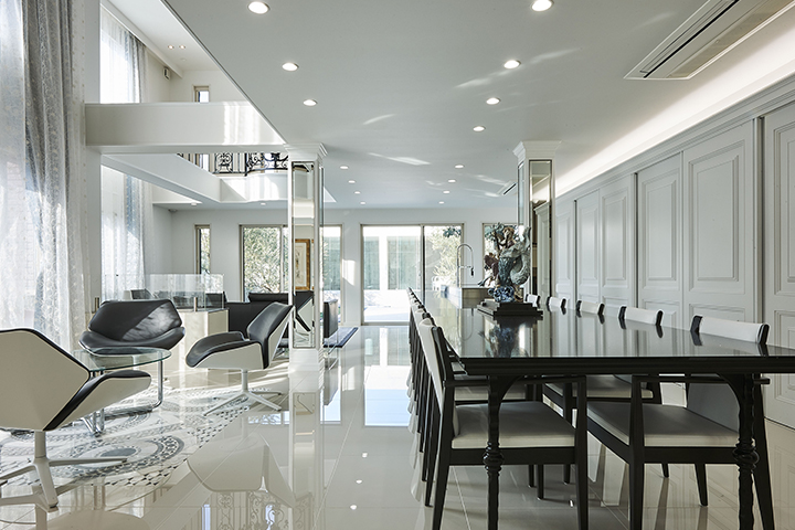アイカでは、留めカット接合によるエプロン加工など高い技術力で、最大長さ3000mmまでのカウンターをご提供可能。
