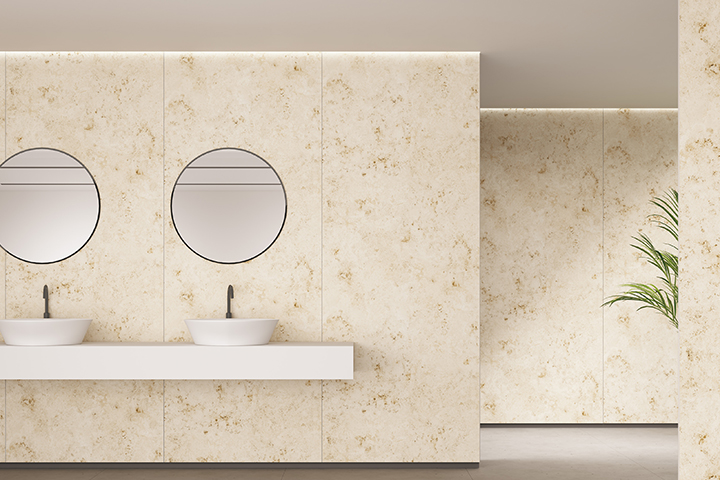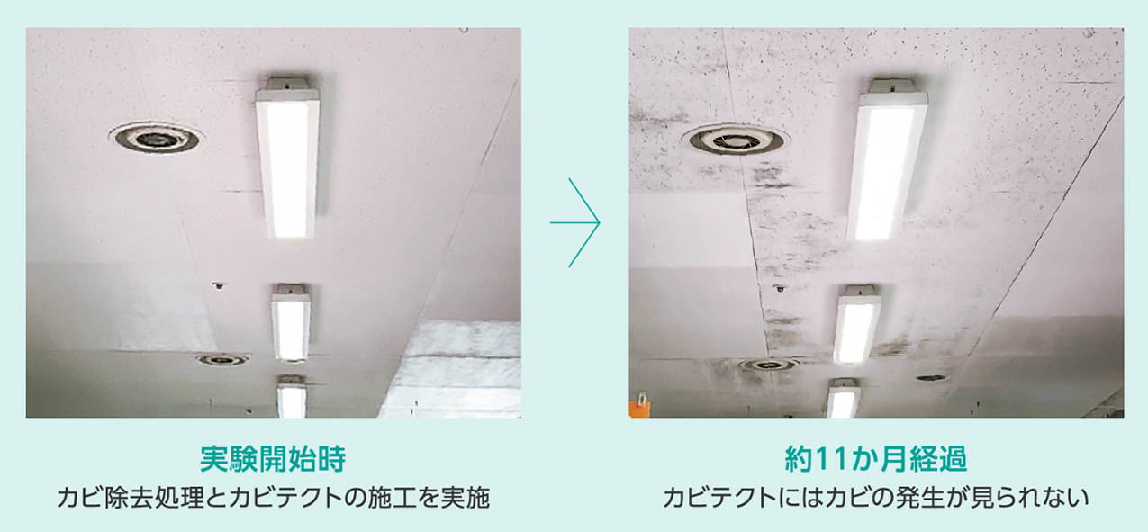 不燃認定を取得したデザイン性の高い壁面材で、キズや汚れに強い耐久性が特徴です。一方、防カビ不燃天井材「カビテクト」は、防カビ性能に特化した天井材であり、結露しやすい場所での使用に適しています。