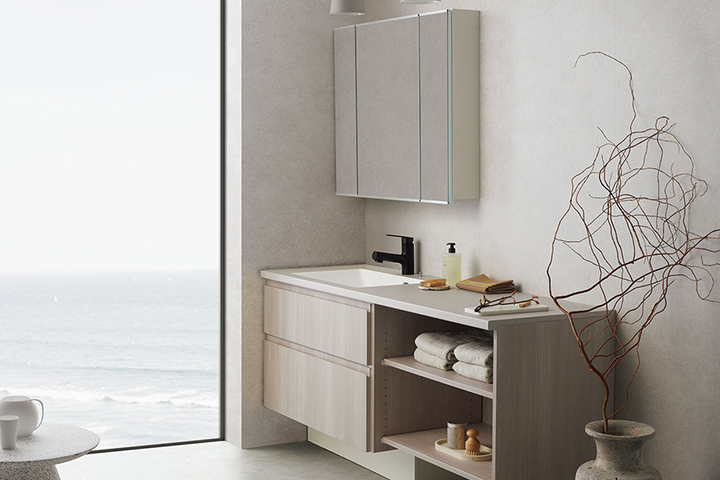 2ボウル×引出を組み合わせてラグジュアリーな雰囲気に。時間に追われる毎日でも、ゆとりをもって美しく暮らせるプラン。