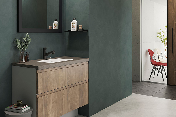 メラミン化粧板の優れた特性を活かした床材です。キズや摩耗、汚れに非常に強く、清掃が簡単なノンワックス仕様のため、メンテナンスの手間が大幅に削減できます。また、セラミックタイルに匹敵する耐衝撃性を持ちながら、軽量で施工が容易な点も特徴です。木目や石目など、リアルで上質なデザインが豊富に揃っており、高い耐久性と意匠性を両立しています。商業施設や住宅の水回りなど、高い機能性が求められる空間に最適です。