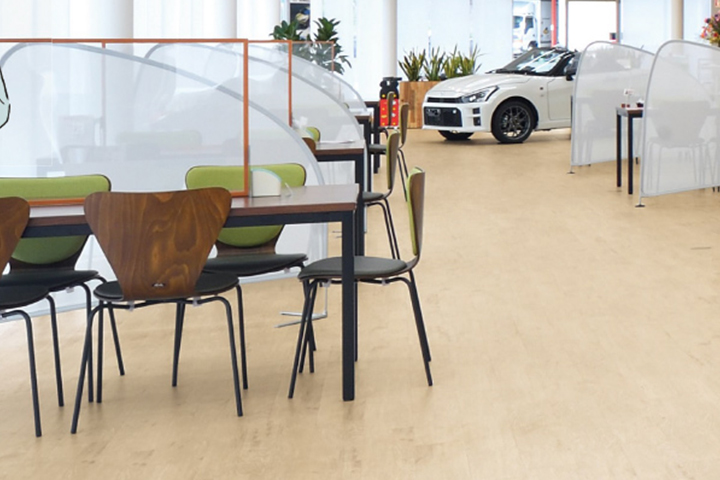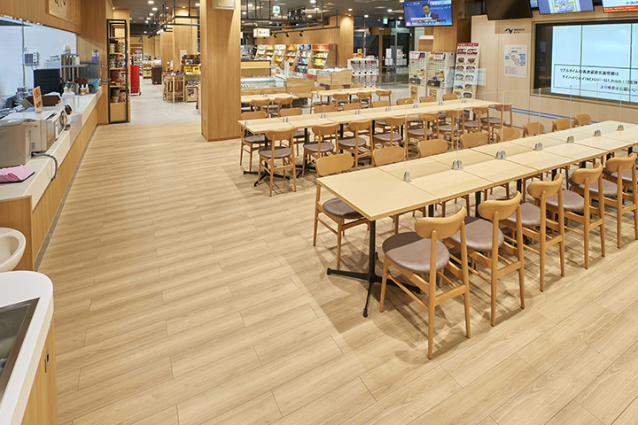 保育園や幼稚園向けに開発された床材です。表面に2mm厚の挽き板を使用しており、高い耐摩耗性を持つため、子供たちが元気に走り回っても安心です。また、木の温もりを感じられる素材で、床暖房にも対応しています。食べこぼしなどによる汚れが染み込みにくく、清掃が簡単なため、メンテナンスの負担を軽減します。このように、安全性と快適性、優れたメンテナンス性を両立しています。